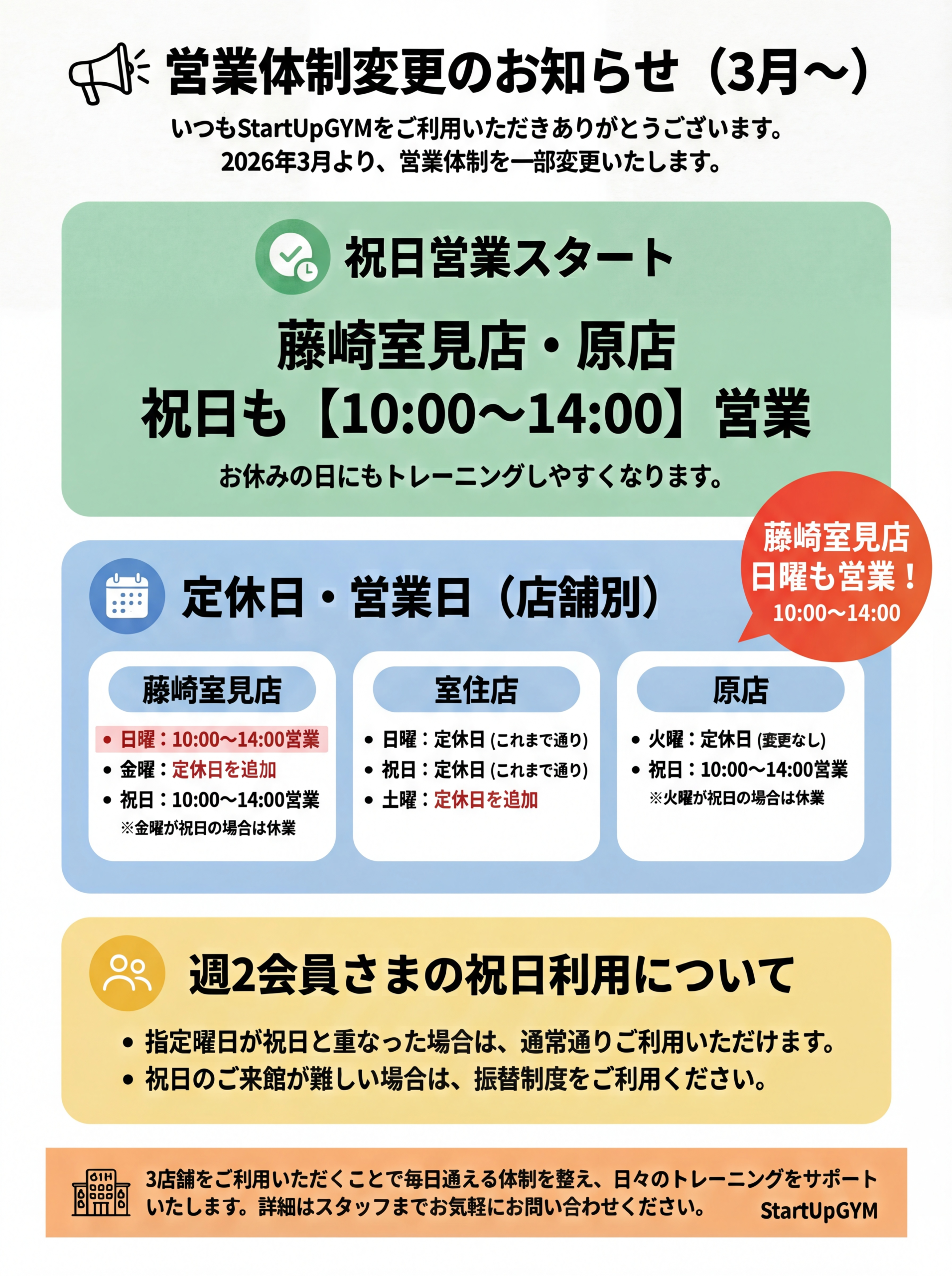 - 日曜日、祝日